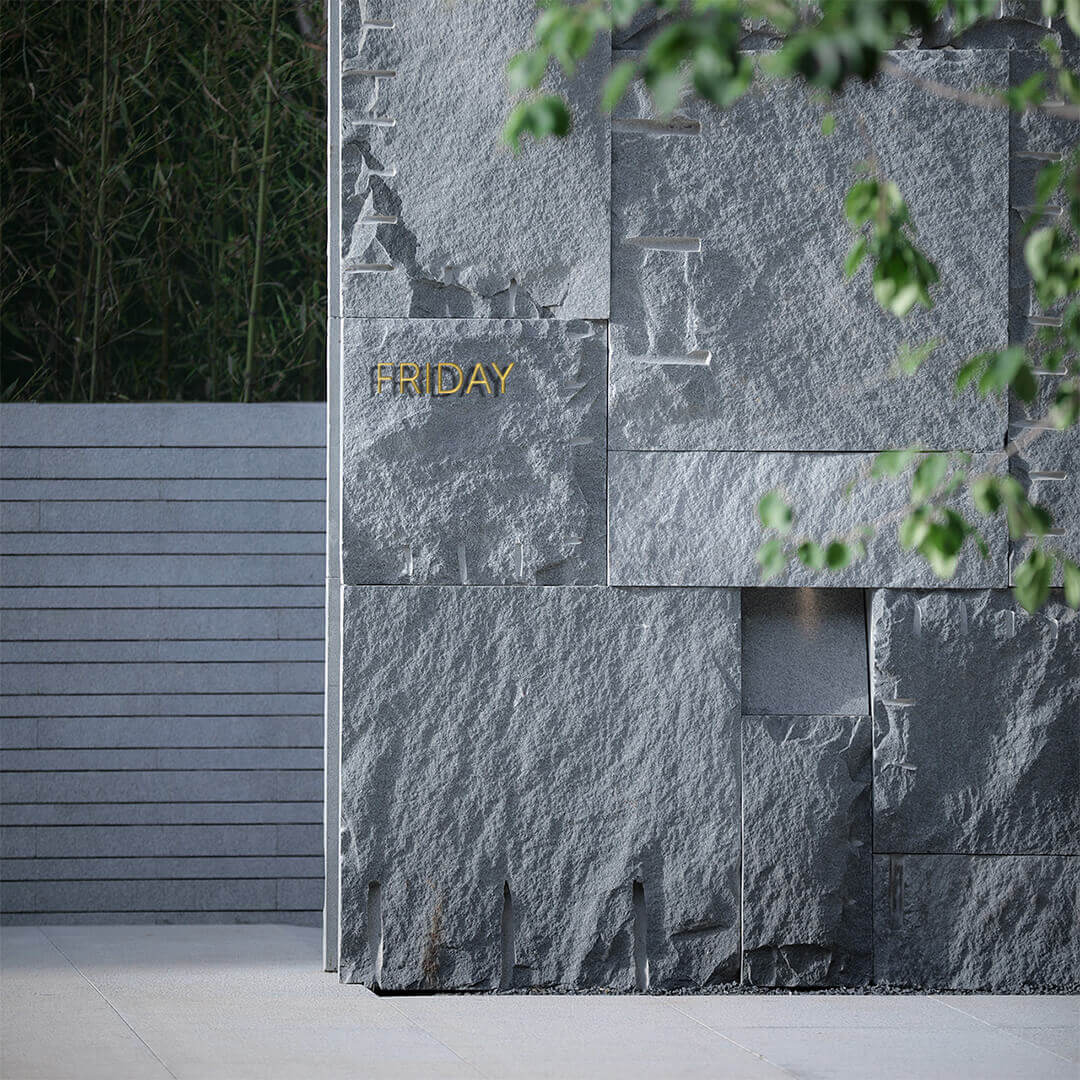 Архитектура Friday Villas — это диалог между строгими современными формами и художественной пластикой. Проект выполнен с вниманием к деталям: фасады вилл используют натуральные материалы — камень, металл и латунь, что придаёт дому благородство, долговечность и выразительный характер. Центральный элемент — скульптура Даши Намдакова, которая становится не просто декоративной деталью, а смысловым центром архитектурного образа.